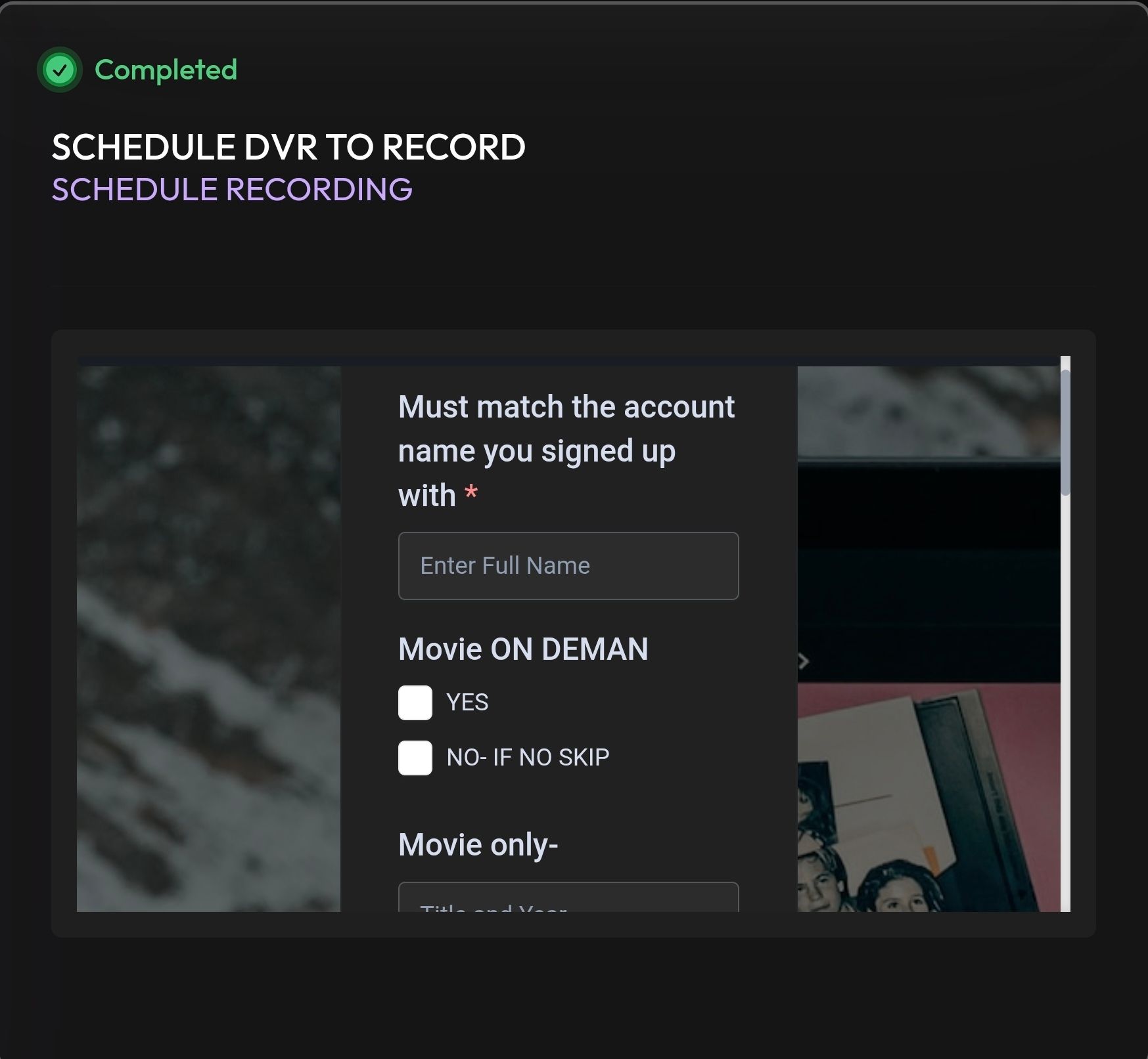 Good question. You will be greeted with DVR record options. Set it and sit back and relax. You will get an email when ready to view. Usually takes 15 to 30 minutes.